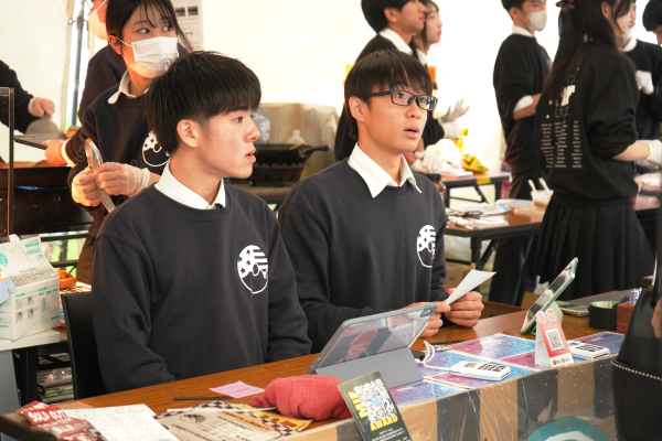学年企画のみならず、志を持つ生徒がクラスや学年を越えて集まった、有志団体による企画も例年同様数多くありました。「電子チケットを導入したい」という有志団体の生徒たちの声から昨年実現した入場システムは、今年も大きなトラブルなく、スムーズに運用されました。