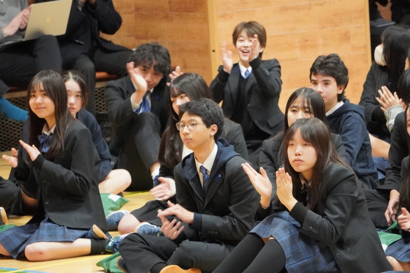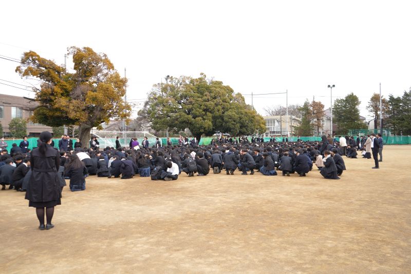 終業式の前には避難訓練も行いました。中学・高校校長ともに、集合から全生徒の点呼確認までの時間が前回よりもさらに短縮されたことの重要性について、「自分で自分を守るだけでなく、自分の行動が周りの人の安全にもつながる」と語りました。今後もさらに気を引き締めて訓練に取り組みます。
