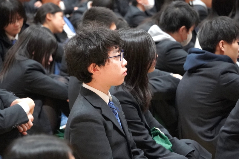 話の最後に、校長が「今自分ができることを考え、次に向かって前進してほしい」と語った言葉は、今年一年を振り返る生徒たちの気持ちを引き締めるきっかけとなったことでしょう。一見無用と思えるものにも価値がある、という考えを忘れず、日々の学びを深めてほしいです。