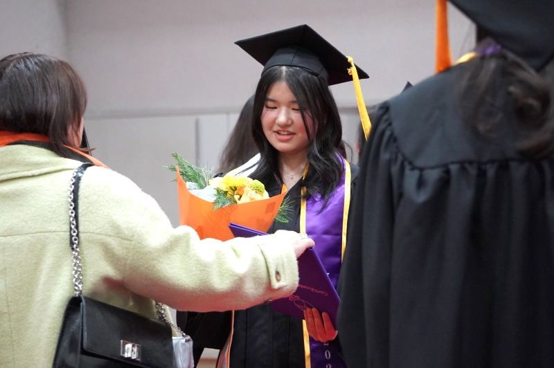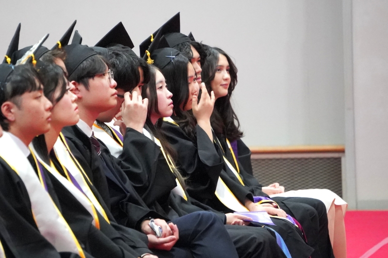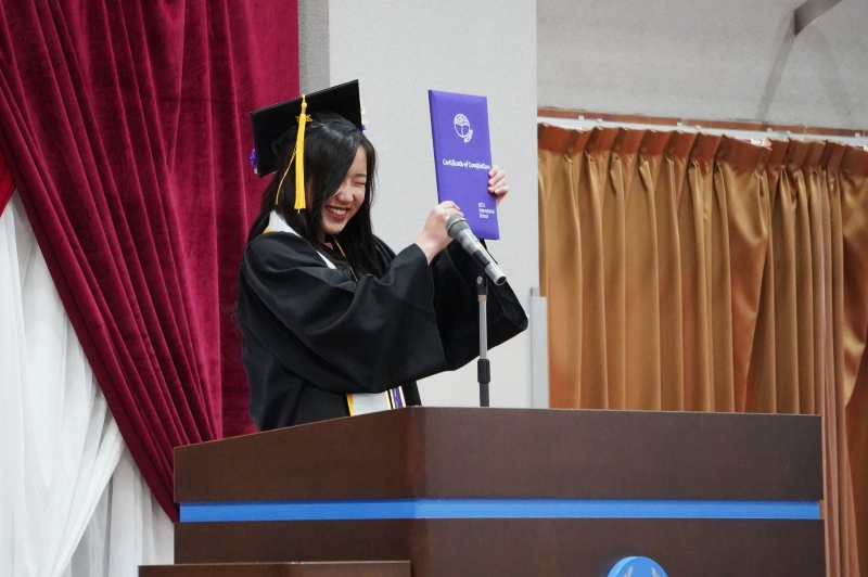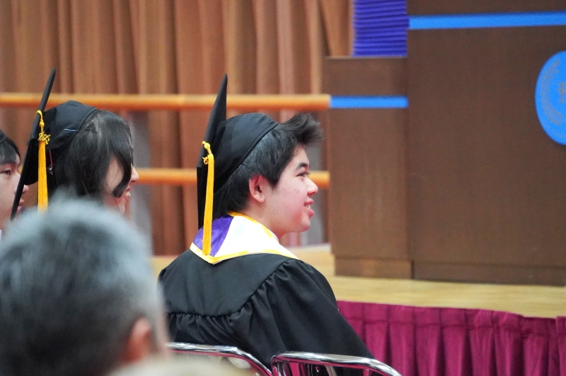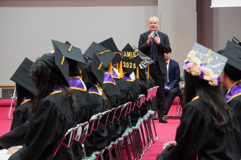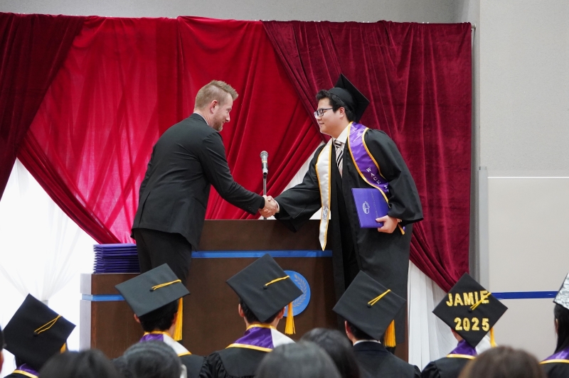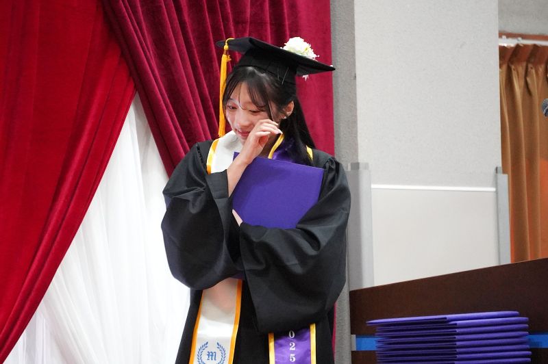 式では、これまで関わってきた教員一人ひとりが生徒へ祝福の言葉を送り、努力と成長を称えるとともに、今後の人生に向けて、自信を持ち前向きに進むよう励ましました。困難を恐れず挑戦することの大切さ、人とのつながりや自己理解の重要性など、多様な視点から送られるアドバイスや温かい言葉に、涙を流す生徒の姿も見られました。