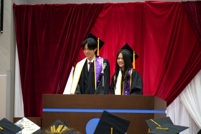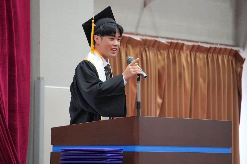 代表スピーチでは、生徒が先生、学校、家族、そしてクラスメイトへの感謝を述べ、困難や失敗を含めたここにたどり着くまでの「旅」について語りました。